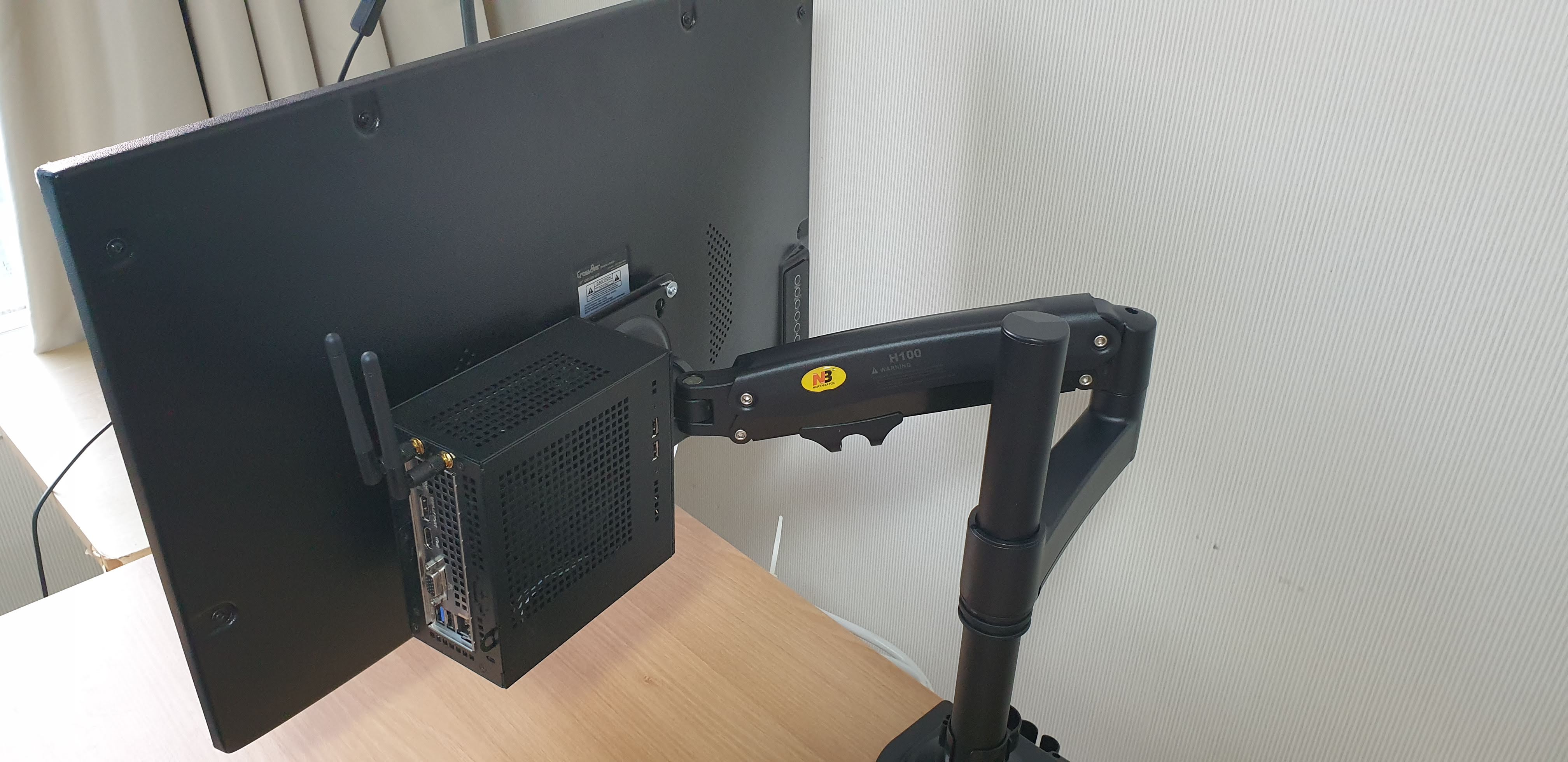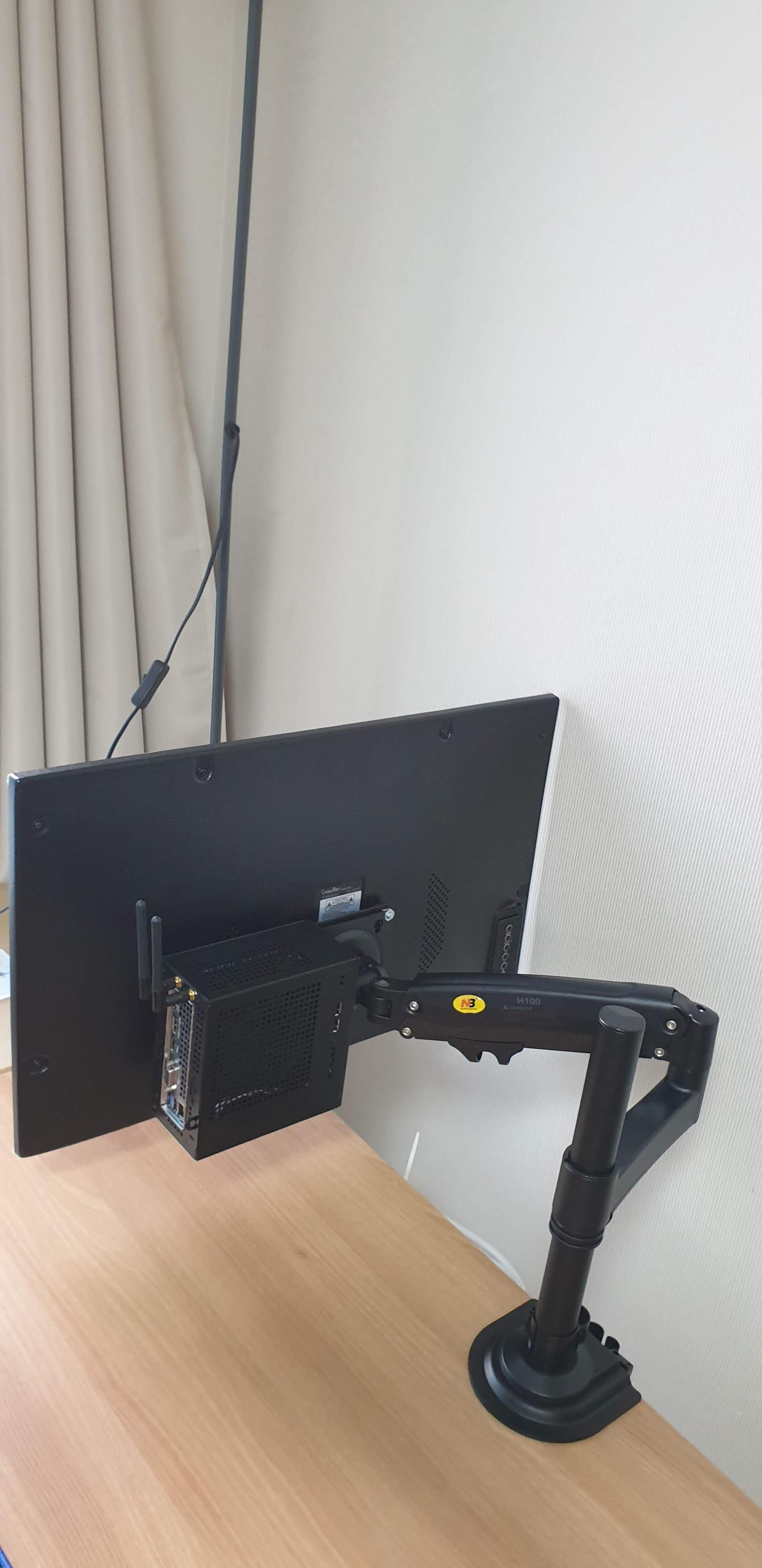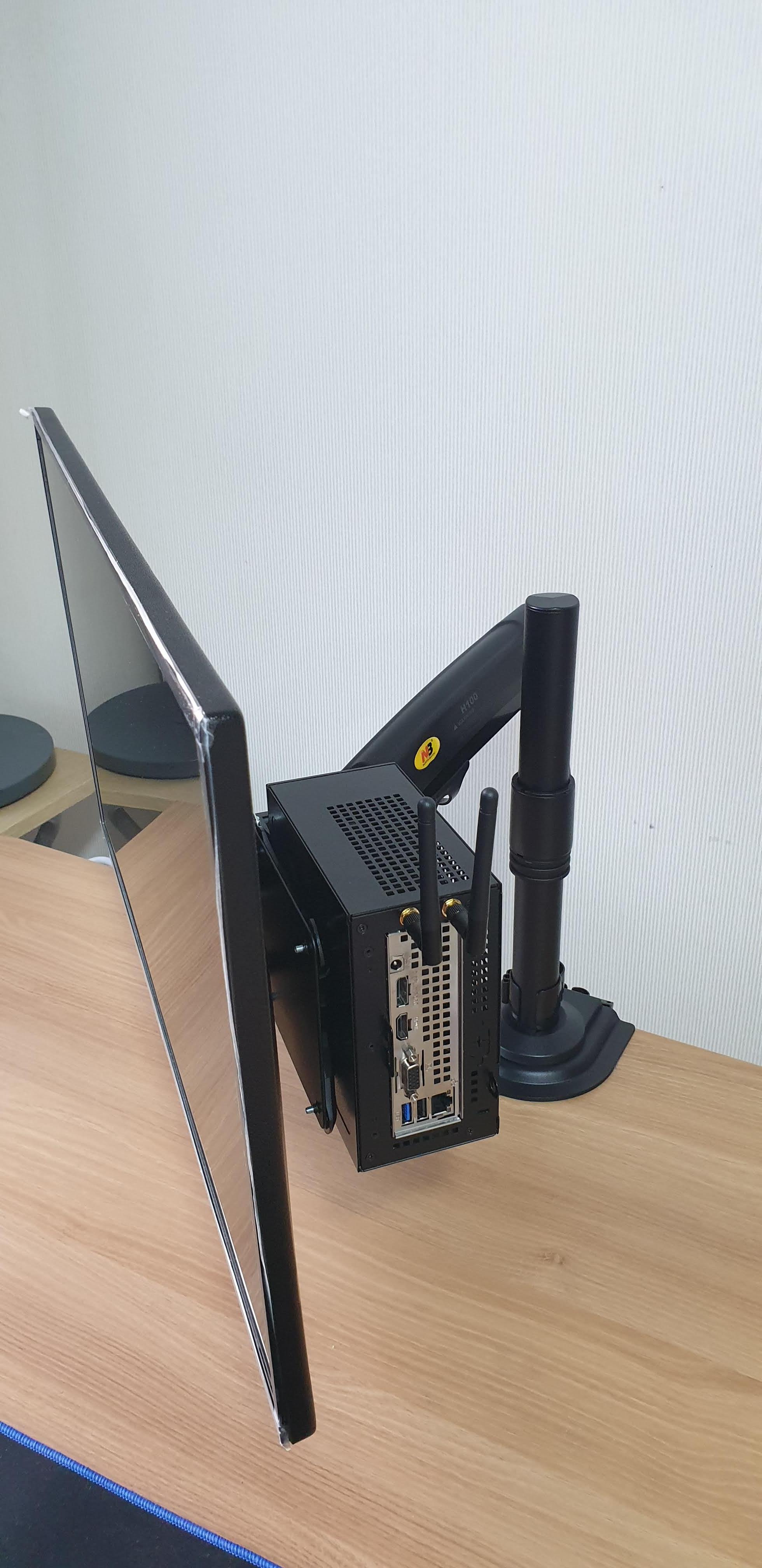 방법은 복잡하지 않지만, A300을 나중에 해체할 때를 고려해서 회전하는 각도를 고민해서 조립해야 한다. 내가 사용한 모니터 암은 NB-100이다보니, 다른 모니터암에는 사이즈나 배치를 완전히 다시 고려해야 할 수도 있다. 거기에 모니터까지도 고려해야 함. 왜냐하면 내모니터의 경우 조작 버튼이 오른쪽에 있다보니, 브라켓을 오른쪽으로 설치하면 간섭이 생길 수 있기 때문에 왼쪽으로 설치.