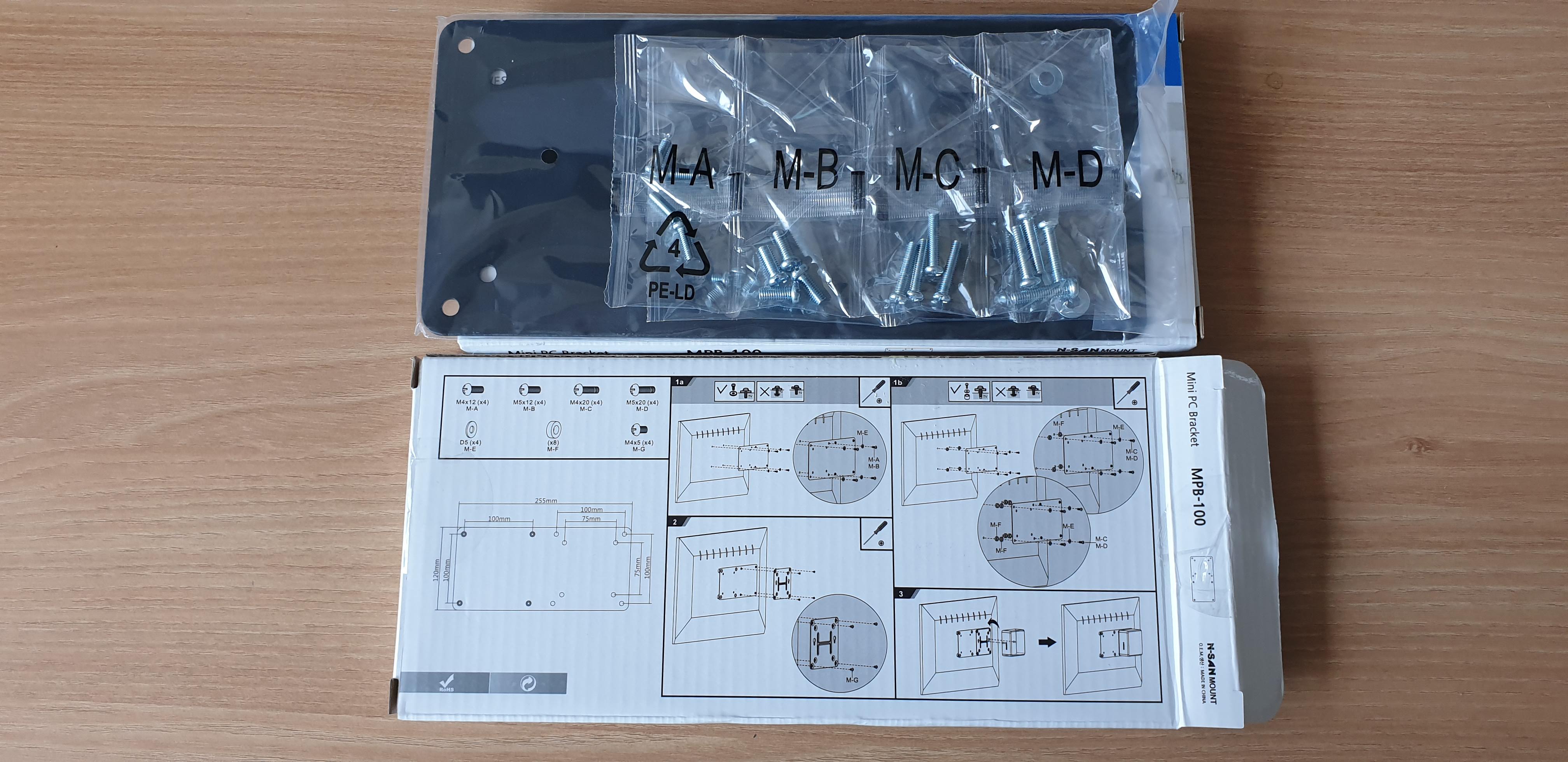 짧고 굵게 이어서 적어본다. 결론적으로 베사홀이 2개 달린 직사각형 판이 필요했는데 폭풍 검색으로 겨우 찾아낸 제품이 있다. 품번은 MPB-100 Mini PC Bracket이다. 원래 인텔 NUC 전용으로 나온 것 같은데, 어차피 베사홀 활용은 똑같으니 응용해보기로 한다.