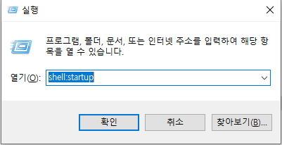 "윈도우키+R"눌러서 뜨는창에 shell:startup 입력하고 확인 누르고