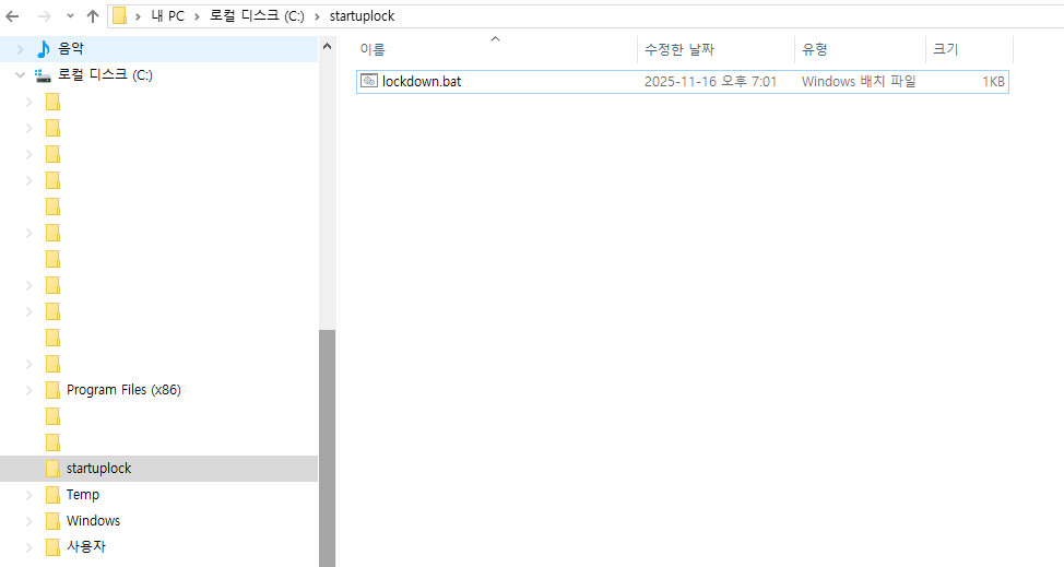 [윈도우] 잠금화면 배치파일 만들기
