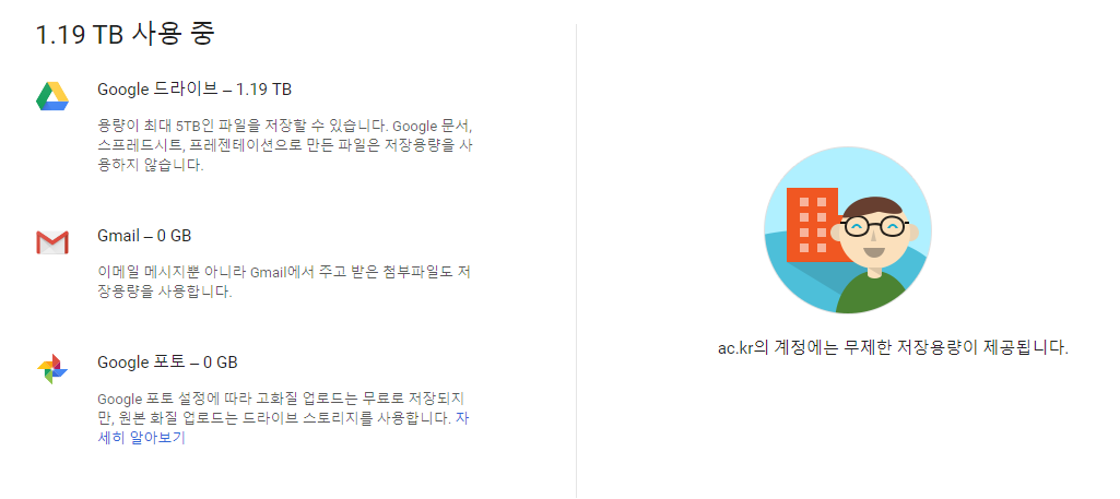가장 무난한 방법, 재학생 및 졸업생도 해당되니 주변 인맥을 잘 활용하자! 나의 경우는 인맥을 활용한 졸업생 계정 획득으로 아래처럼 1테라를 사용중이다.