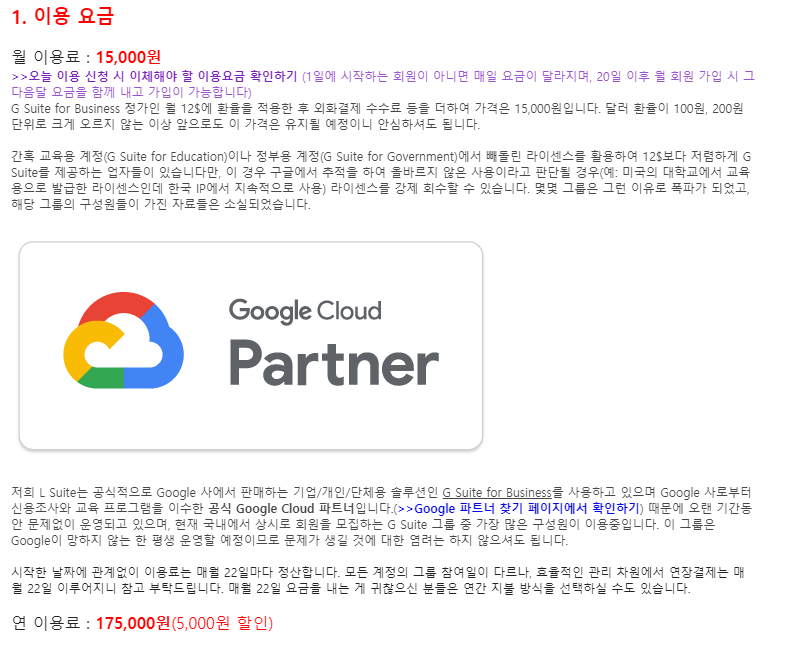 1. 구글 G suite에 가입해서 무제한용량을 제공받는 방법 : 월 15,000원