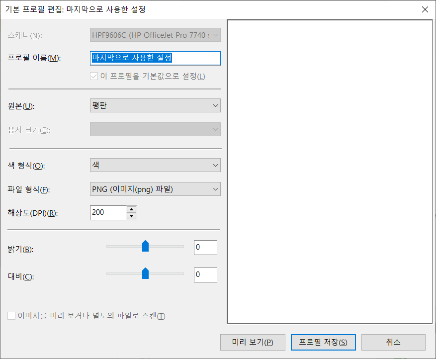 왜 이걸 가지고 난리냐면, 윈도우10 기본 스캔프로그램으로 간결하게 스캔을 하고싶은데, 평판으로 설정을 해두면 용지크기가 비활성화되고, 미리보기를 하면 아래처럼 하단 여백이 자동으로 생겨버리고 해상도 1700 x 2800의 변태같은 스캔이 된다. 점선을 손으로 수정하면되지 않느냐고? 아니 용지설정만 하게 해주면 A4로 스캔하면 되는데!!!! 왜!!!!!!ㅅㅂ